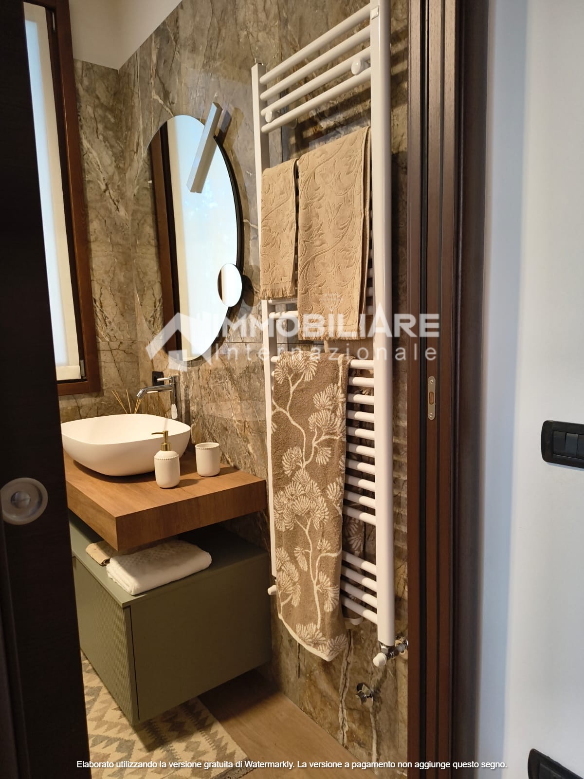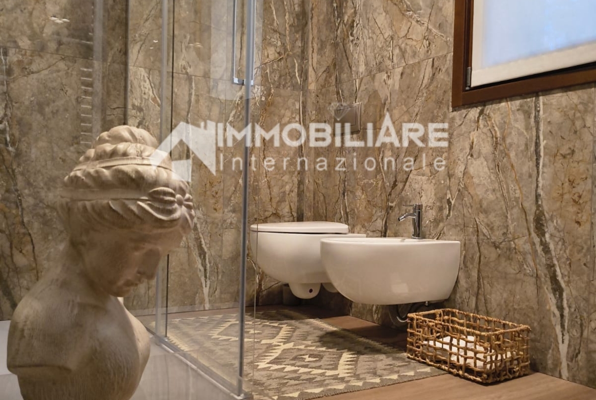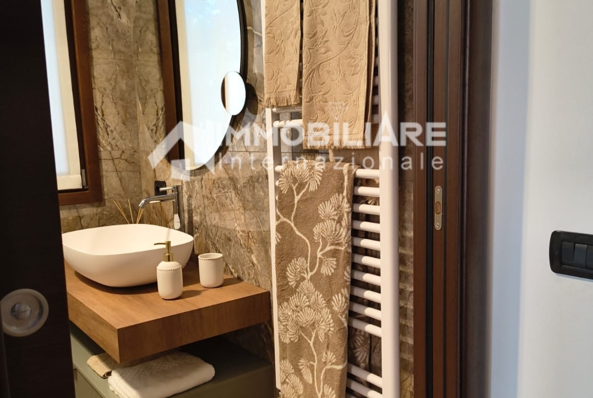 L’appartamento è dotato di impianto di aria condizionata in tutte le stanze che assicura una perfetta climatizzazione. La camera da letto, anch’essa è dotata di un grande armadio realizzato su misura. Bagno finestrato, accessoriato di tutto comprese le stoviglie come foto. L’appartamento si presenta in condizioni impeccabili, pronto per essere abitato fin da subito.